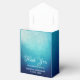 Wedding favour box with a pretty blue half mandala pattern with a background gradient colour of light sea blue transitioning into a dark navy blue.