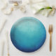 Paper plates with a pretty blue half mandala pattern with a background gradient colour of light sea blue transitioning into a dark navy blue.
