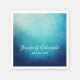 Wedding paper napkins with a pretty blue half mandala pattern with a background gradient colour of light sea blue transitioning into a dark navy blue.
