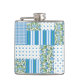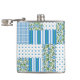 A pretty Hip Flask, with a country style Faux Patchwork of floral, polka dot, striped and check gingham patterns in blue, green and white: part of the Posh & Painterly 'Morning Glory' collection. This pattern will fit all Flask sizes.