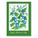 A pretty floral Mother's Day greeting card with bright blue Morning Glory flowers on a white background with a matching green border and elegant white lettering. The design is a hand-painted watercolour by Judy Adamson and you can personalise the inside message.