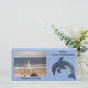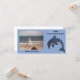 Add your own photograph easily to this custom photo card with the template. The card is a pretty light blue with a drawing of a sparkle like blue and white ocean dolphin in a jumping position. Customise the name and text also with the templates.