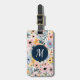 Pretty Blue Pink Floral Monogram Luggage Tag
