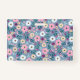 Elegant and delicate flowers hand painted design, featuring a collection of soft pink flowers, small green and white flowers, orange flowers, dark pink small flowers, tiny flamingo pink blooming flowers and foliage and multiple green leaf shapes greenery hand painting, on a glacier lake blue colour trend background. This special unique botanical nature floral artwork is perfect for a spring botanic nature look decor.