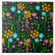 Pretty Blue Pink Garden Flowers Black Design Tile