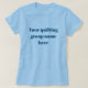 This pretty blue on blue quilter's group t-shirt also comes in white with purple lettering, and grey with deep red lettering. Easily type in your quilting group's name. Comfy and washable.