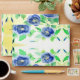 Decorative blue rose flower envelope with greens and yellows, the text on the back flap can be personalised or text is removable.