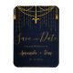 Pretty Blue Traditional Gold Twirls Luxury Wedding Save The Date Magnet Invitation . Gold Traditional design on a Blue textured Background, this Wedding Save the Date makes a great first impression. Send out these pretty wedding announcement cards to family & friends to announce the big day . Customise these beautiful save the date cards by changing the names of bride & groom and the wedding date.