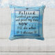 The verse on this pillow reads: RETIRED I worked for years and paid my dues NOW I'll do what I choose. The pretty watercolor background is a lovely combination of blues, including sky, baby, and Carolina. The different shades of blue flow across the pillow in abstract waves. The verse resides within a blue frame, along with two sweet daisy flowers. A heart scroll is above the framed verse and a simple line and dot divider is below. The artwork is the same on both the front and the back of the pillow. This would make a wonderful Happy Retirement gift.