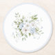 Pretty Blue White Floral Bridal Shower Round Paper Coaster