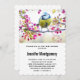 Baby Shower invitation with an amazing photograph of the cutest little bird perched on a branch covered in pink blossoms and green leaves. The bird has a blue head and yellow body with a very sweet face. Adorable.