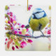 Ornament with an amazing photograph of the cutest little bird perched on a branch covered in pink blossoms and green leaves. The bird has a blue head and yellow body with a very sweet face. Adorable.