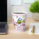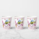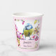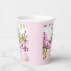 Paper cups with an amazing photograph of the cutest little bird perched on a branch covered in pink blossoms and green leaves. The bird has a blue head and yellow body with a very sweet face. Adorable.