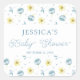 Pretty Blue Yellow Floral Baby Shower Favour Square Sticker