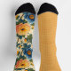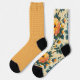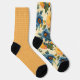 Pretty blue yellow orange patterns odd mix matched socks. Fun mix matching socks.