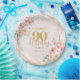 These personalized 90th birthday party plates bring together modern watercolor artistry and classic milestone elegance. The blush pink florals create a warm, inviting atmosphere, while the gold glitter frame adds the sparkle and luxury that every special birthday deserves. Perfect for daughters, mothers, grandmothers, or any beloved woman celebrating her incredible 90-year journey.