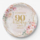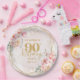 Pretty Blush Floral Gold Frame 90th Birthday Party Paper Plate