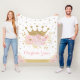 Pretty Blush Floral Royal Princess Gold Crown Girl Fleece Blanket