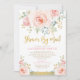 Celebrate the upcoming arrival of your sweet baby girl with this girly baby shower invitation. The design features pretty watercolor blush pink roses and green and gold greenery.