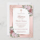 Elegant blush pink and rose gold floral baptism invitation featuring blush pink roses.