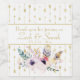 Beautiful Boho watercolor illustration features flowers and feathers on white with gold arrows background. Customise with wedding couple's details