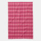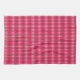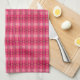 Pretty kitchen towel features tiled Bohemian style pattern in shades of pink with floral icons