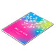 Colourful gradient blend pretty bright fuchsia pink, blue with a hint of yellow-green, with falling bokeh sparkles in white. Personalise with your name or initials in white font lettering.