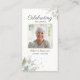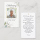 A beautiful prayer card to give to family and friends as a funeral keepsake. Design features a photo on the front highlighted with a watercolor botanical border. Add your beloved one's name, custom text, favourite poem or scripture to the back to create a truly unique remembrance.