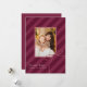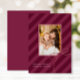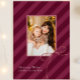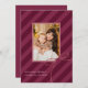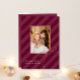 Stylish Christmas photo card features classic ribbon stripes in a bold new print with a modern holiday magenta purple colorway for a simply elegant Christmas greeting card. A pretty bow sits in the corner of the centre photo. Customise this elegant card with your favourite family photo and personalised name with editable seasonal greeting.