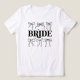Celebrate your special day in style with this charming "Bride" shirt. Perfect for bachelorette parties, bridal showers, or getting ready on the big day, this shirt adds a fun and festive touch to any wedding celebration. Featuring bold lettering and a flattering fit, it's a must-have for every bride-to-be. Pair it with jeans, leggings, or a cute skirt for a look that’s effortlessly bridal.