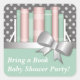 This sticker set is great for a Bring a Book baby shower party or a storybook celebration! The colours are pink, teal and silver that are perfect for a unisex baby shower and the design features a bookcase with polka dots in the background. And there's a very pretty bow to complete the look!