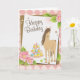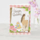 Pretty Brown Horse and Pink Flowers Happy Birthday Card