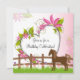 Pretty brown horse with a fence, heart and flowers birthday party invitation for girls. It's perfect for any horse or pony themed party and can be personalised with all your party details. ~