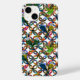 These little cuties are all original paintings by Jess Shaw perching in a bespoke pattern of colorful circles, an adaptation of a quilt design called ‘the double wedding ring’ which was a popular design in the 1920’s , cute and colorful this design originally represented love , perfect for a phone, holidays, giving as a present in fact anything you want to brighten up and make you smile!