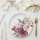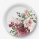 Pretty Burgundy and Pink Watercolor Flowers Paper Plate