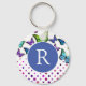 Monogrammed keychain with pretty butterflies and dots design in blues, green and purple.