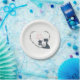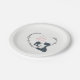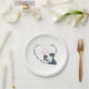 This baby shower party plate for girls features a pretty black and white mum cat with her sweet matching kitten. They are sitting among a delicate heart decorated with flowers.