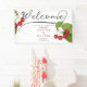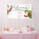 Celebrate your special day with this modern black and white welcome party banner. Featuring stylish black calligraphy and a vintage illustration of pretty red cherries with green leaves on an elegant white background, this minimalist design adds a romantic touch to your wedding decor. Personalise this wedding sign with the bride and groom's names in classic cherry red typography and the event date in sleek black. Explore the full CHERRY WEDDING collection for matching products and colour variations, creating a sophisticated, cohesive look for your celebration. Perfect for chic summer weddings, bridal showers, and festive outdoor occasions, this banner brings a modern yet timeless feel to your event. Make your wedding unforgettable with this elegant, customisable design!