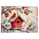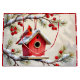 A beautiful Christmas gift bag with an illustration of a red cardinal on a birdhouse surrounded by pine tree branch with red berries and snow.