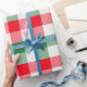 Pretty Christmas White Green and Red Buffalo Plaid Wrapping Paper