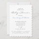 Entice an array of guests with this delightfully darling scalloped edge baby shower invitation. This pretty invite features a pretty script in grey lettering and the backside is a blue design.