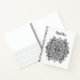 On the front of the notebook you can customise it by adding your name in the personal area. The front has a hand drawn dragonfly and flowers mandala that you can colour. The back has an already coloured dragonfly mandala in pretty colours like bright pink, purple and yellow.