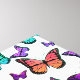 Multi-coloured butterfly pattern in purples, greens and pinks.