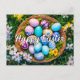 This unique postcard features various colourful Easter eggs in a basket. This item would make a wonderful greeting for friends, family and co-workers.
