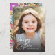 This stylish Easter photo card features a full bleed photo template and hand lettered text reading, "Happy Easter." The back contains a hand drawn floral design in magenta / fuchsia pink, orange, golden yellow, purple, blue, and green over a custom colour background (shown in light peach). The style of the floral design is almost chalk like. Easily personalise it for stylish greetings you can send to family and friends!