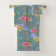 Pretty Colourful Hand Drawn Flower Pattern Bath Towel Set