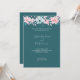 Introducing our stunning modern and romantic wedding invitation, perfect for couples who want to create an unforgettable impression for their special day. The invitation features a beautiful teal green background that's sure to catch the eye and make a statement. On the top of the invitation, a row of exquisite pink and blue flowers add a touch of romance and femininity. The design is further enhanced with delicate light purple leaves, which add depth and texture to the overall look.