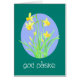 A very pretty Easter Card with the front cover greeting in Danish Language with a clump of daffodils on a blue background with a green border and white lettering, from a watercolour painting by Judy Adamson. Please feel free to personalise the inside message.