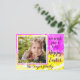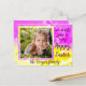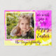 Pink, golden yellow and white with a large dahlia bloom superimposed to create a dreamy elegant effect. The postcard front reads: we wish you a very Happy Easter. Your family's name appears below the frame. There is a template on the back for your return address.