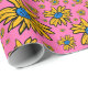 Whimsical daisies in yellow and blue on a hot pink background. A funky floral design in bright colours. Fun colourful paper that's perfect for wrapping gifts and craft projects.